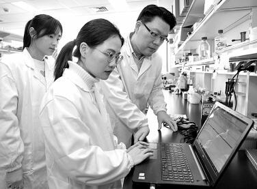 中科院神經(jīng)科學(xué)研究所實(shí)驗(yàn)室的研究人員在討論實(shí)驗(yàn)設(shè)計(jì)。新華社發(fā)