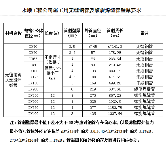 ①無縫鋼管:采取20#鋼,標準為GB/T17395-2008《無縫鋼管尺寸、外形、重量及運行偏差》、GB/8163《輸送流體用無縫鋼管》;螺旋鋼管:材質為Q235B,標準為GB/T 9711-2017。無縫鋼管及螺旋鋼管壁厚最小值下差不大于5%,(考慮到鋼管存在偏心率,以最薄壁厚處值為最小值)且不得低于以下企業(yè)標準:上海寶鋼集團公司、首鋼集團、鞍山鋼鐵集團公司、武漢鋼鐵(集團)公司、萊蕪鋼鐵集團、濟南鋼鐵集團總公司、攀枝花鋼鐵(集團)公司、唐山鋼鐵集團有限責任公司、青島鋼鐵控股集團有限責任公司、天津鋼管集團有限公司。