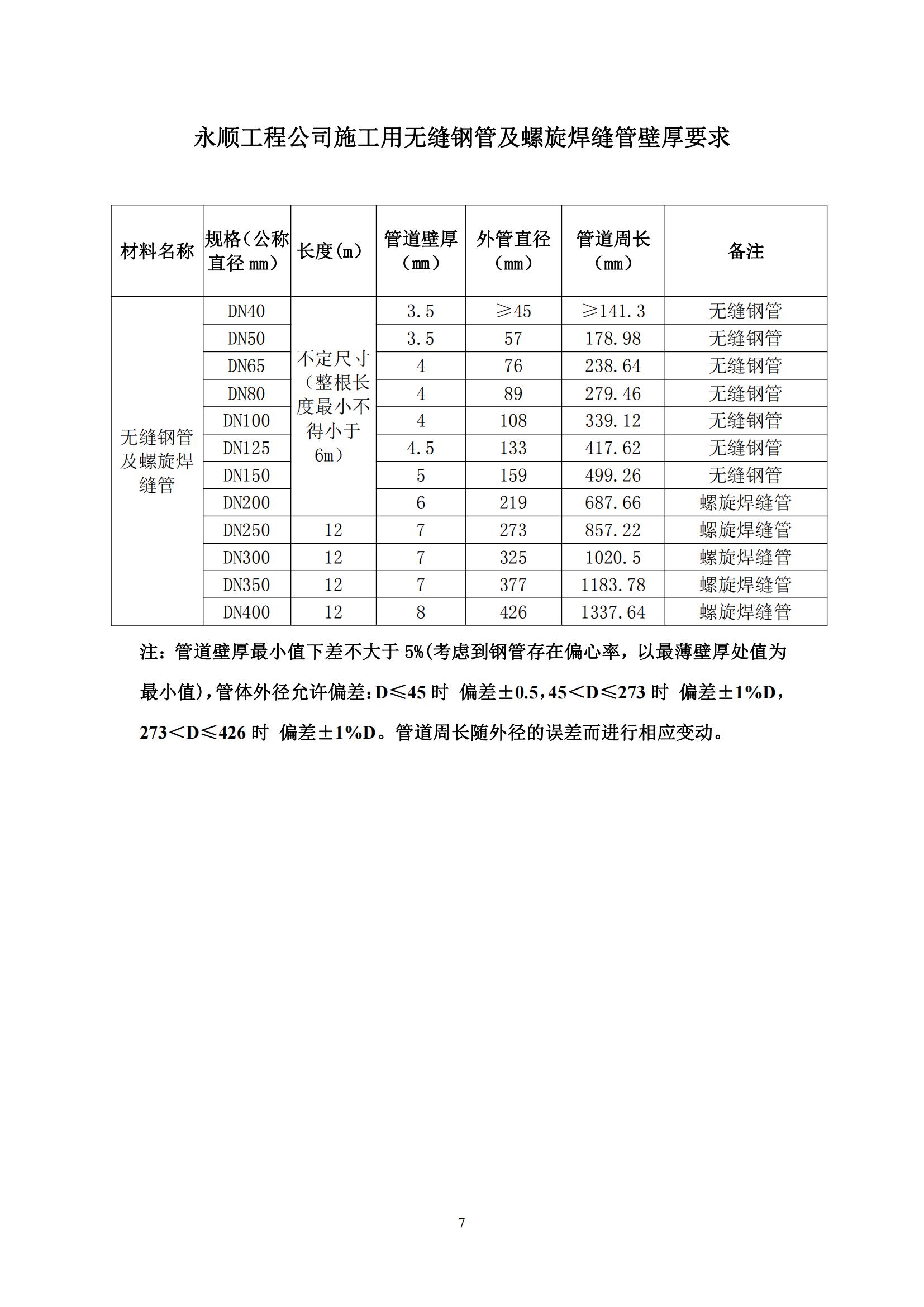 ①無縫鋼管:采取20#鋼,標準為GB/T17395-2008《無縫鋼管尺寸、外形、重量及運行偏差》、GB/8163《輸送流體用無縫鋼管》;螺旋鋼管:材質(zhì)為Q235B,標準為GB/T 9711-2017。無縫鋼管及螺旋鋼管壁厚最小值下差不大于5%,(考慮到鋼管存在偏心率,以最薄壁厚處值為最小值)且不得低于以下企業(yè)標準:上海寶鋼集團公司、首鋼集團、鞍山鋼鐵集團公司、武漢鋼鐵(集團)公司、萊蕪鋼鐵集團、濟南鋼鐵集團總公司、攀枝花鋼鐵(集團)公司、唐山鋼鐵集團有限責任公司、青島鋼鐵控股集團有限責任公司、天津鋼管集團有限公司。